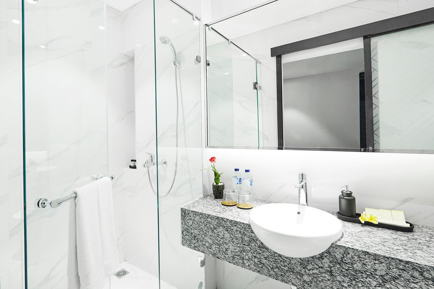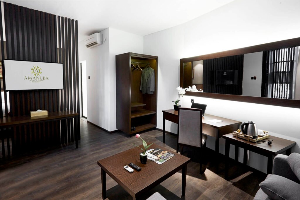 Contemporary natural designed, our 28 Sqm Deluxe room is very comfort and versatile with its compact designed. Equipped with coffee & tea maker, sleep well in your bed with international quality and designed in minimalist modern style and luxury amenities in the bathroom.