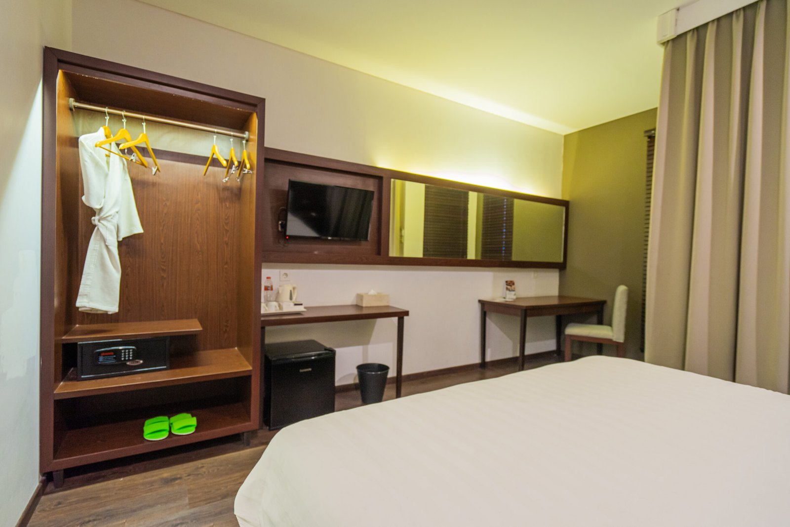 Contemporary natural designed, our 28 Sqm Deluxe room is very comfort and versatile with its compact designed. Equipped with coffee & tea maker, sleep well in your bed with international quality and designed in minimalist modern style and luxury amenities in the bathroom.