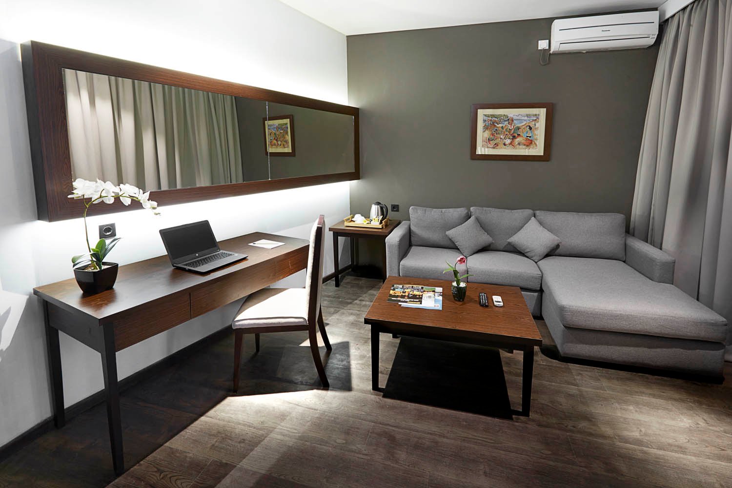 Make your self feels like home in our 44 Deluxe and Suite rooms is comfortable with contemporary design and complete modern facilities. Each room fully equipped with Private Air conditioner, LED TV with international channels, minibar, tea and coffee maker facilities, Safety deposit box. The luxury bath room featured hot and cold shower, complete amenities, towels, slippers and private hair dryer.